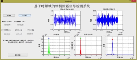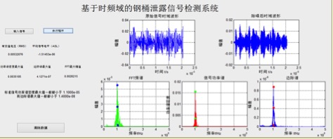 After editing all the callback functions, the GUI is saved and run. When testing with a 0.5mm leaking steel drum signal, the result shown in Figure 4.8 was obtained, confirming that the system successfully detects acoustic emission signals.
